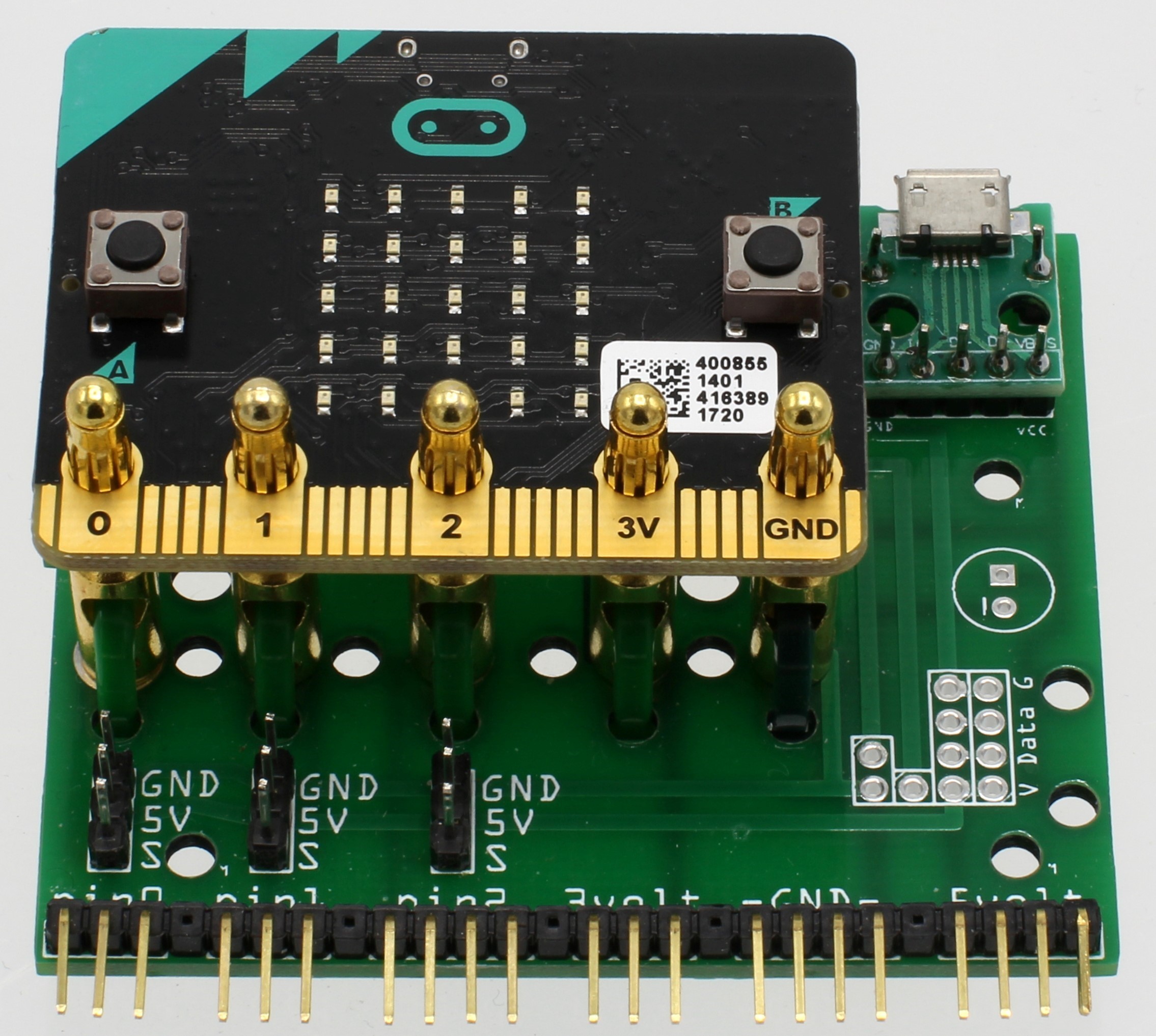 Met een gekochte adapter (Keyestudio) waar goede ervaringen mee zijn opgedaan.