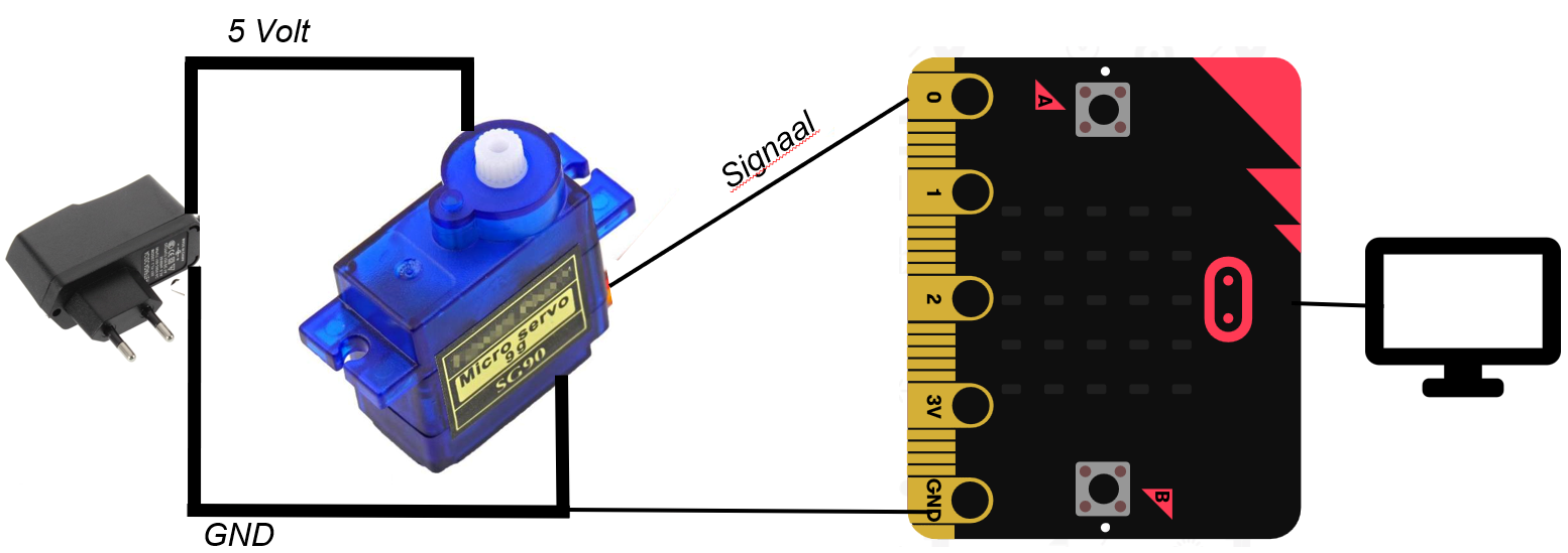 Het algemene schema van het aansluiten van een aparte voeding voor de servo